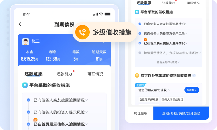 债权人可在平台指导下,选个合适的朋友进行上门沟通协商。这可以解决自己不好意思催收、缺少协商谈判的技巧、担心直面债务人时谈崩以及没有时间持续催收等问题